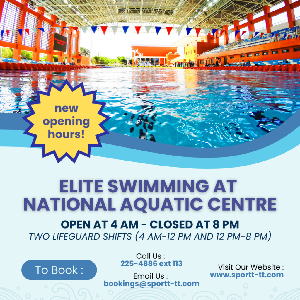 The Sports Company of Trinidad and Tobago (SporTT) is pleased to announce extended opening hours at the National Aquatic Centre (NAC) to better serve the local aquatic sports community. Effective February 12th, 2025, the facility will operate from 4:00am to 8:00pm daily, providing greater flexibility for athletes and teams.